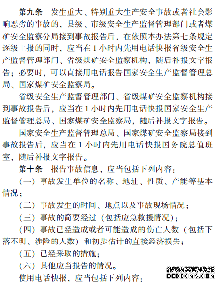 生產(chǎn)安全事故信息 報(bào)告和處置辦法