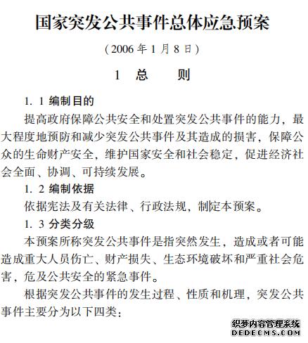 國家突發(fā)公共事件總體應急預案