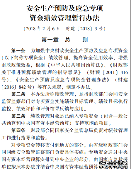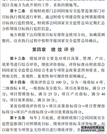 安全生產(chǎn)預防及應急專項 資金績效管理暫行辦法