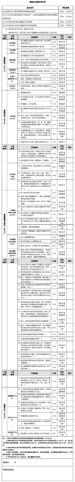 《健康企業(yè)建設(shè)評估技術(shù)指南》評估細則