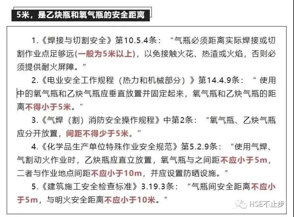 1. 使用乙炔氣瓶的現(xiàn)場,乙炔氣的存儲不得超過30M3(相當于公稱容積為40L的乙炔氣瓶5瓶); 2. 乙炔氣的存儲量超過30M3時,應用非燃燒材料隔離出單獨的儲存間,其中一面應為固定墻壁; 3. 乙炔氣的存儲量超過240M3(相當于40瓶)時,應建造耐火等級不低于二級的存儲倉庫,與建筑物的防火間距不應小于10米,否則應以防火墻隔開。