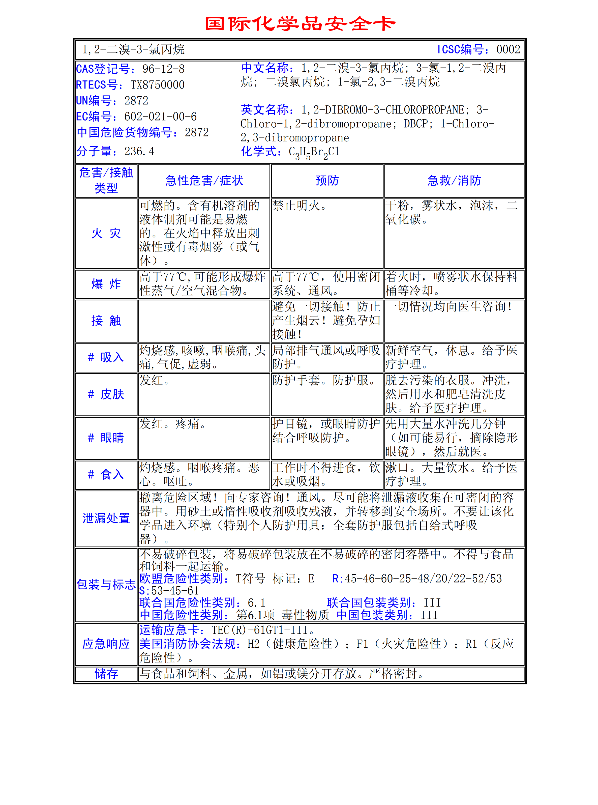 1,2- 二溴-3-氯丙烷 MSDS