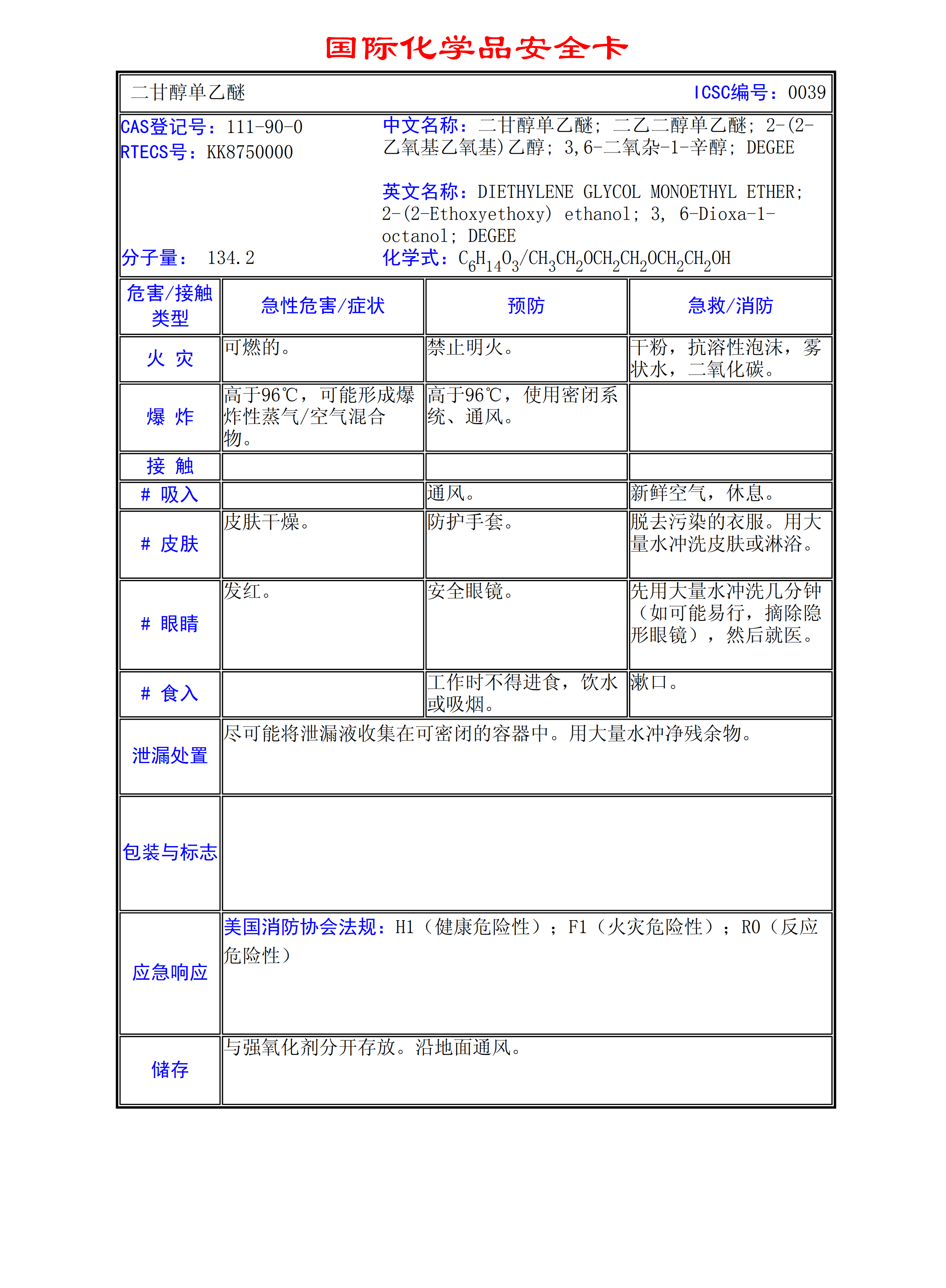 二甘醇單乙醚MSDS
