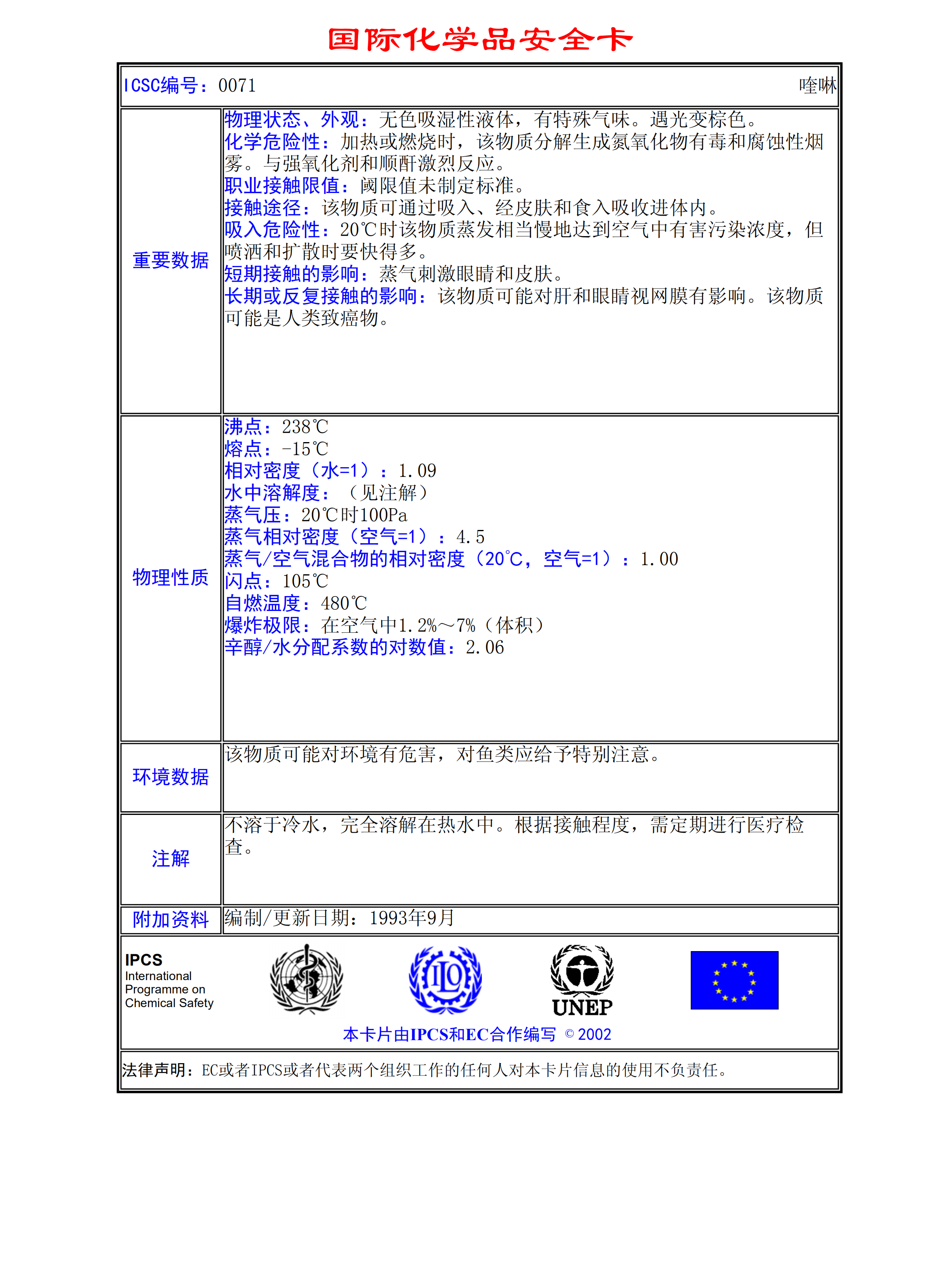 喹啉MSDS