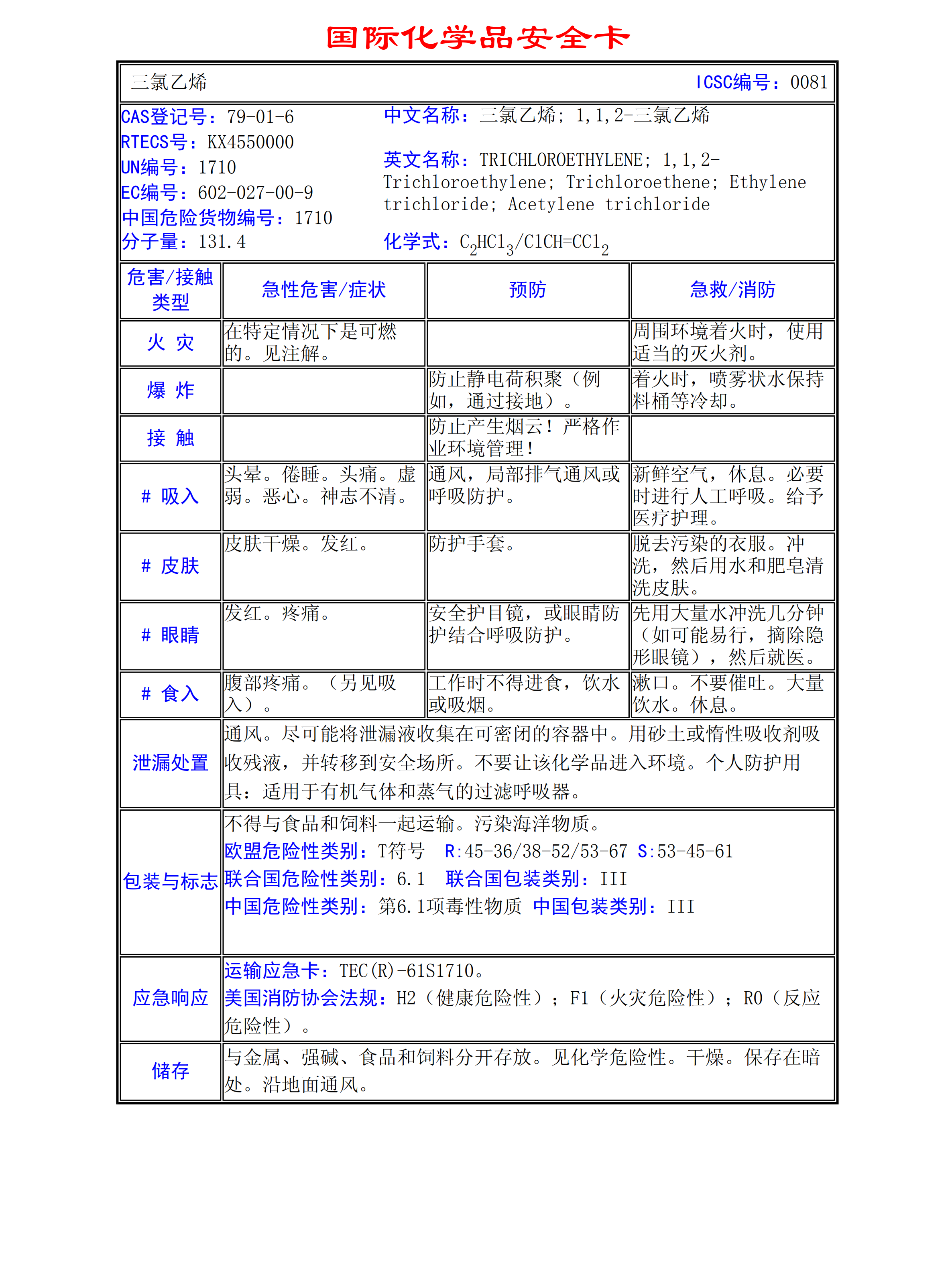 三氯乙烯MSDS