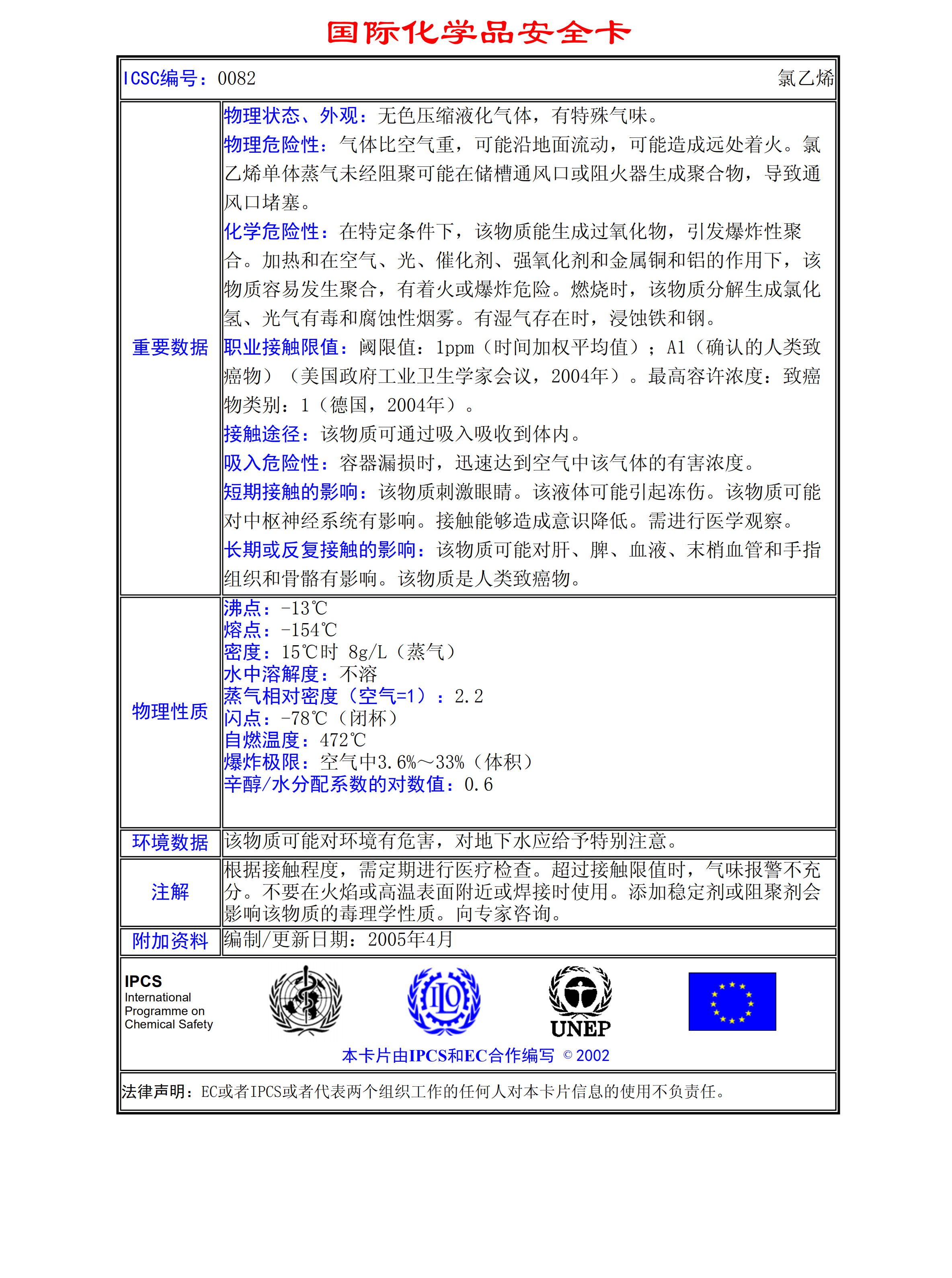 氯乙烯MSDS