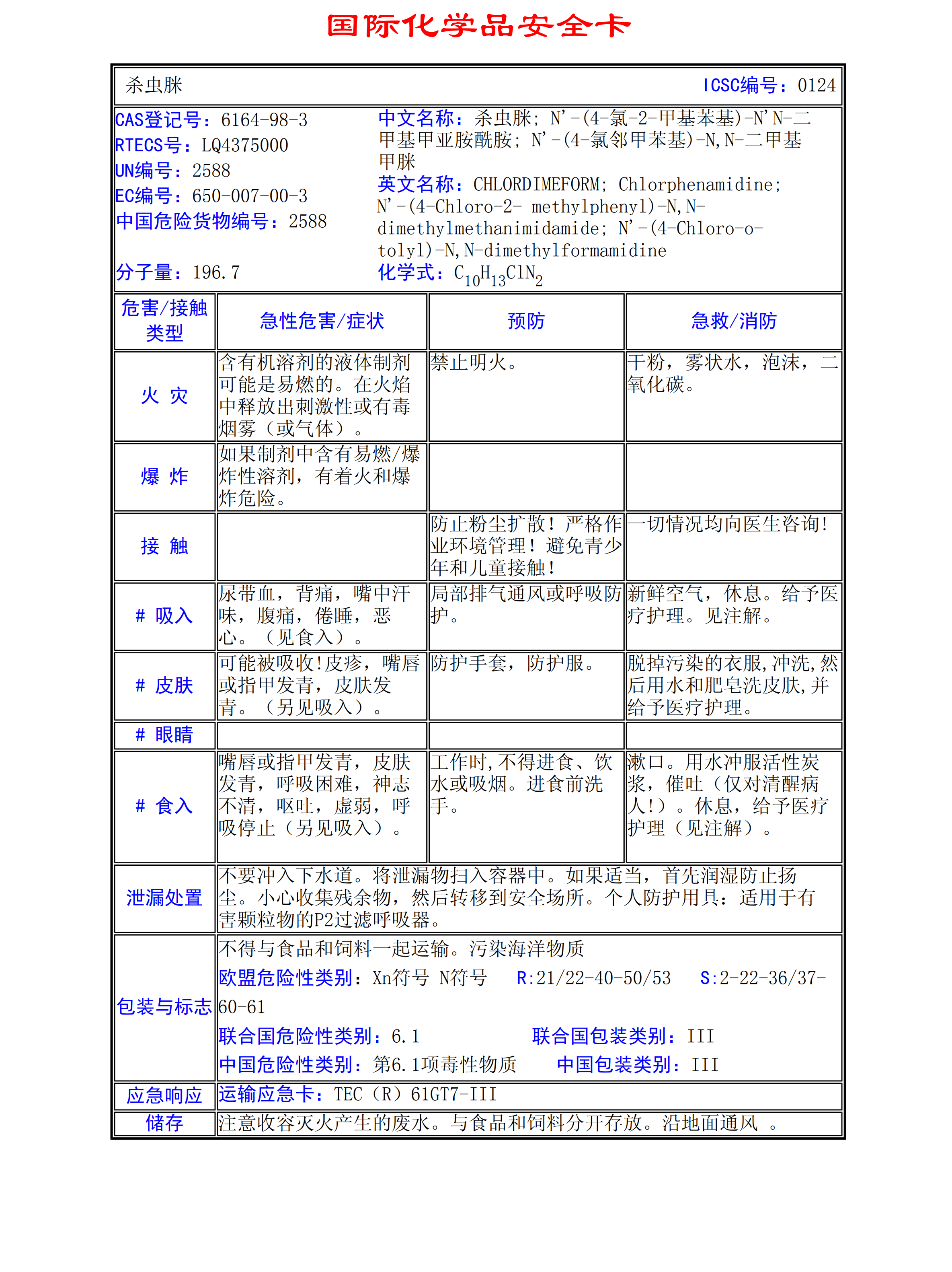 殺蟲脒鹽酸鹽MSDS