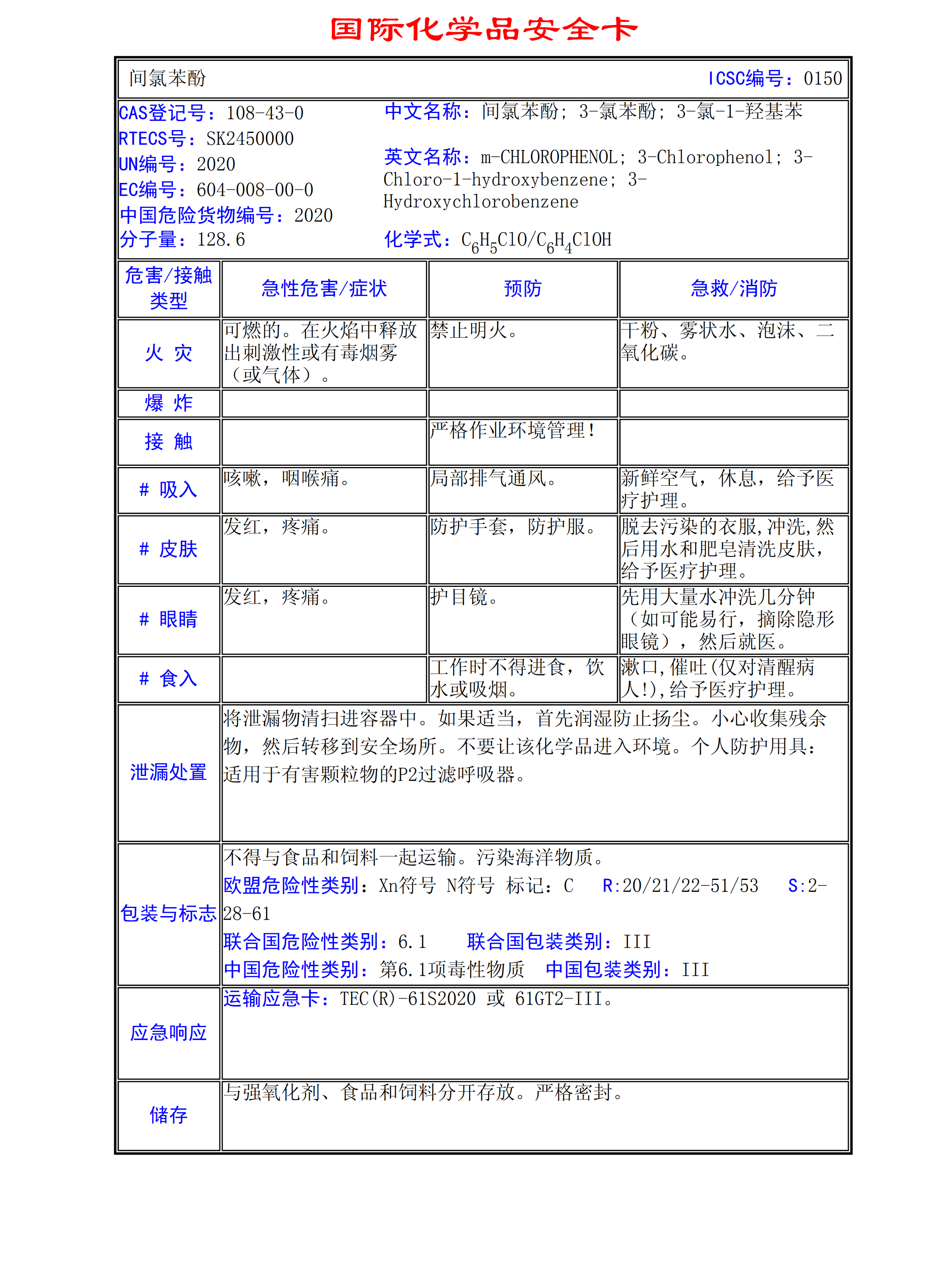 間氯苯酚MSDS