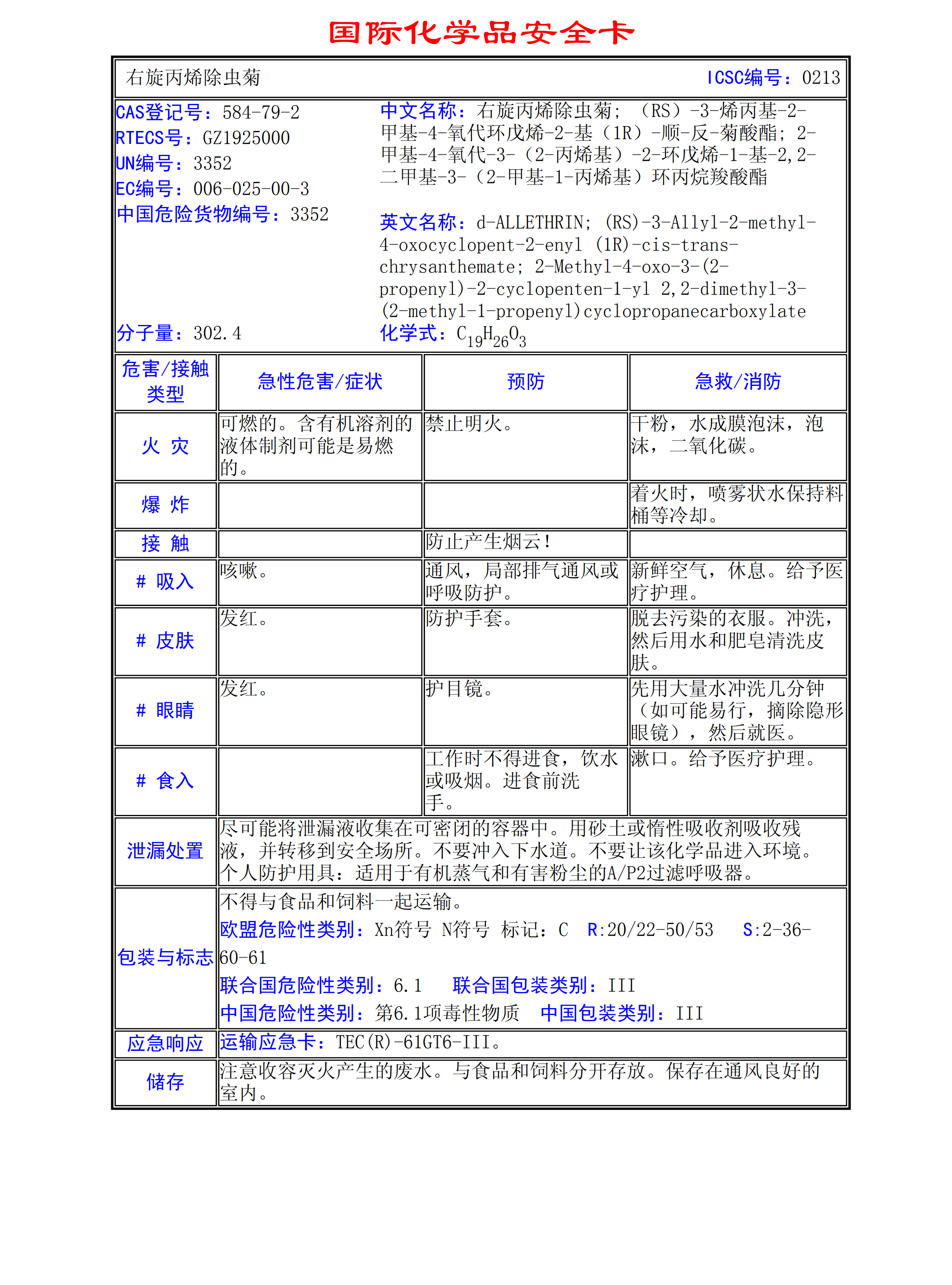 丙烯除蟲(chóng)菊MSDS