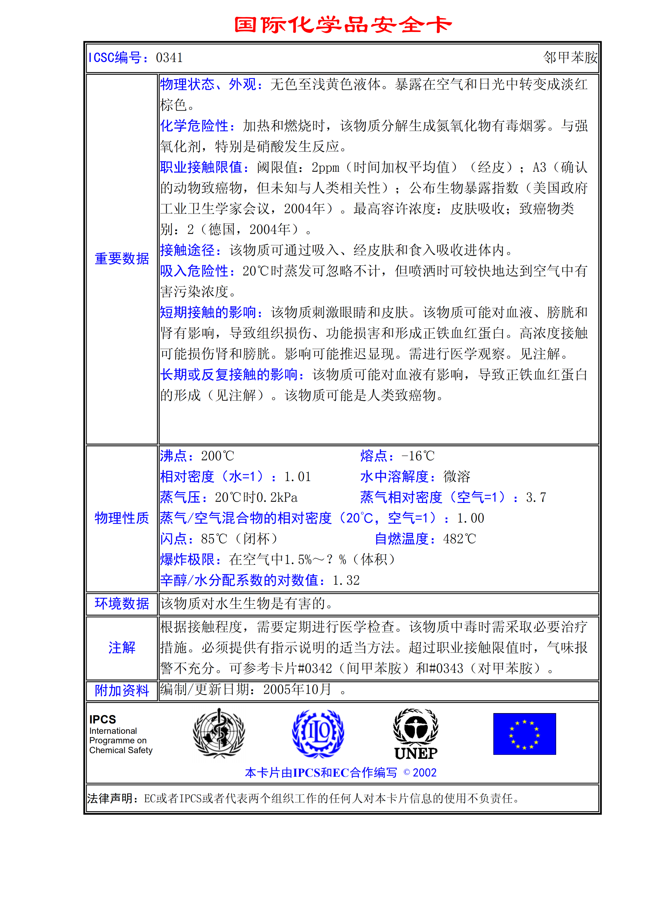 鄰甲苯胺MSDS