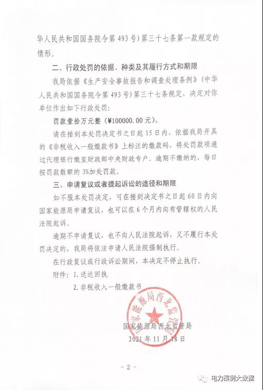 近日,國家能源局西北監(jiān)管局發(fā)布【2021】28號行政處罰決定書,因設備管理不到位造成風機倒塔一般設備事故,且遲報事故信息,對寧夏銀星能源股份有限公司鹽池風力發(fā)電分公司罰款10萬元。