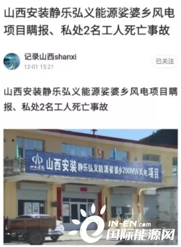 從媒體報道,山西安裝靜樂弘義能源娑婆鄉(xiāng)200MW風電項目,于2021年1月18日發(fā)生一起2名工人在幸村鄉(xiāng)標段作業(yè)途中傷亡事故。該項目部并未向上級政府部門上報,私自隱瞞處理此事。
