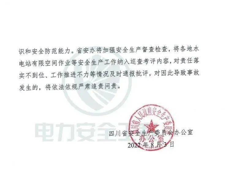 2022年8月3日,四川省廣安市前鋒區(qū)廣興鎮(zhèn)涼灘水電站在實施恢復專用沖砂通道工程項目過程中,發(fā)生中毒事故,造成3人死亡,4人受傷。
