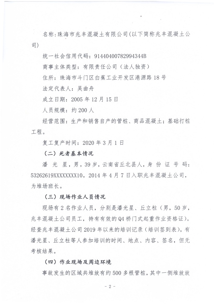 珠海市兆豐混凝土有限公司“4·19”一般物體打擊事故調(diào)查報(bào)告