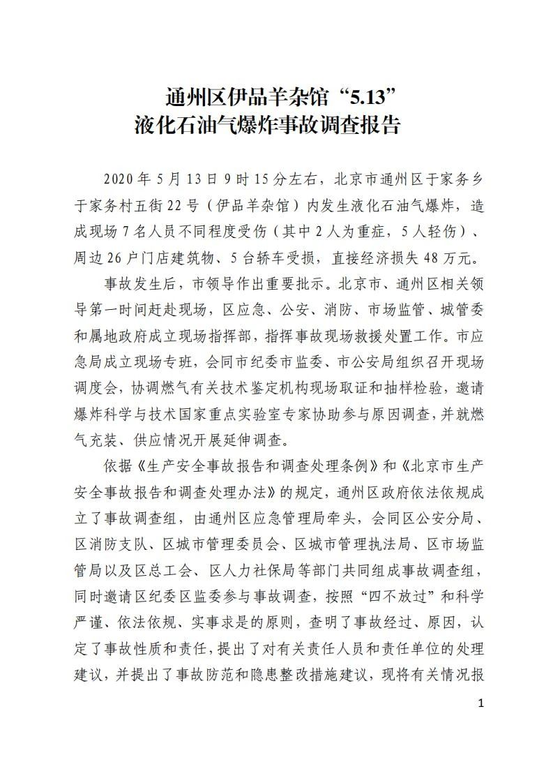 造成7人受傷,26戶建筑物、5輛汽車(chē)受損的北京市通州區(qū)伊品羊雜館“5.13”液化石油氣爆炸事故調(diào)查報(bào)告,來(lái)了!