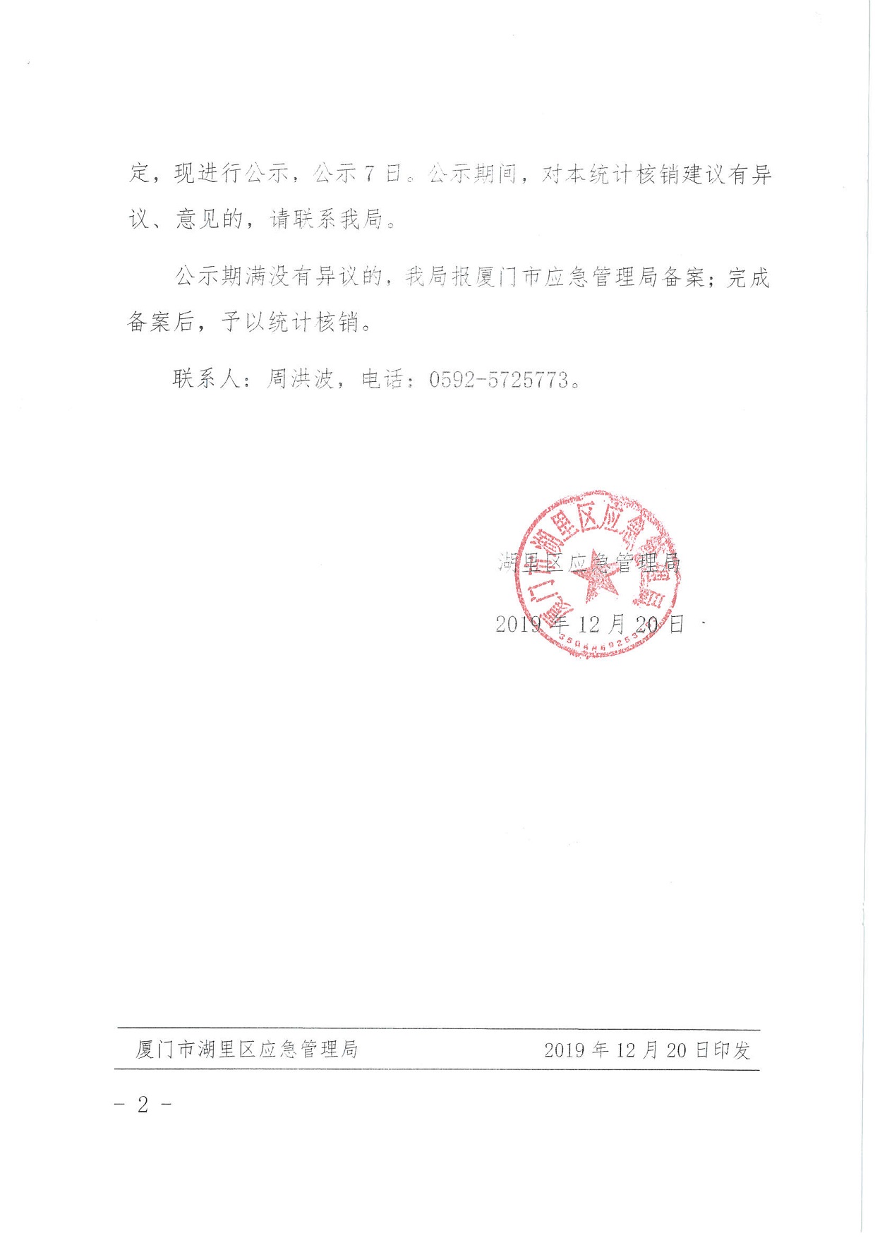 湖里區(qū)應(yīng)急管理局關(guān)于建議對(duì)“4·8”廈門(mén)德易達(dá)土石方有限公司亡人事故進(jìn)行統(tǒng)計(jì)核銷的公示