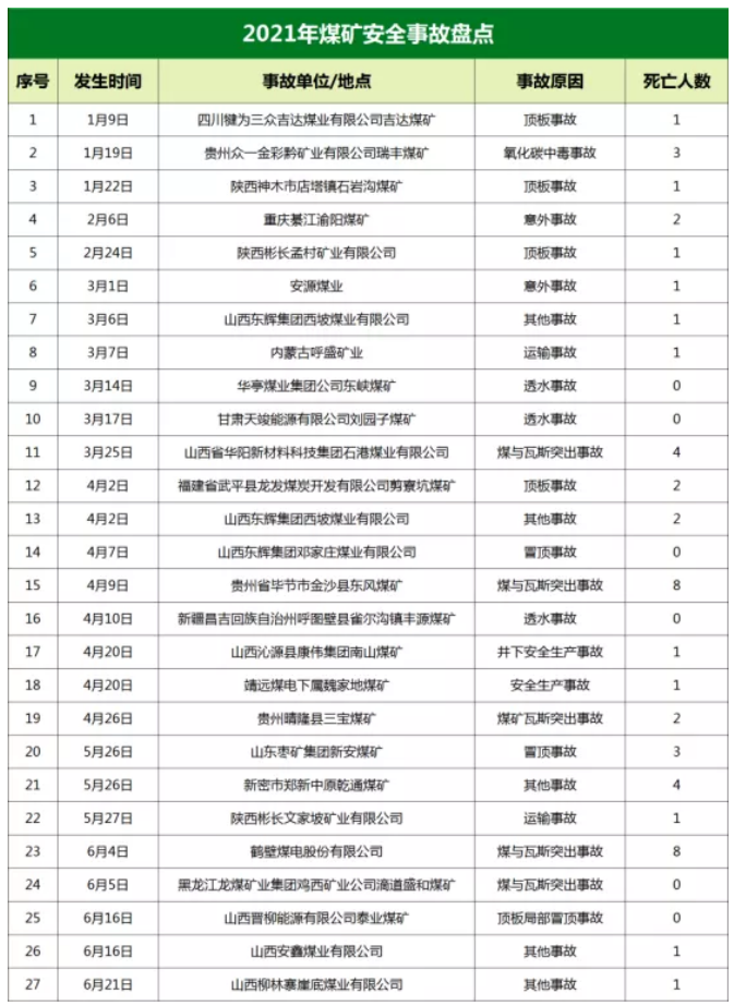 2021年上半年能源安全事故匯總