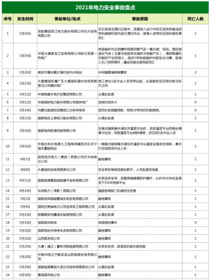 據(jù)國(guó)際能源網(wǎng)記者統(tǒng)計(jì)2021年至今已發(fā)生了24起電力安全事故,造成22人死亡,僅2021年5月全國(guó)發(fā)生電力人身傷亡就發(fā)生了事故9起、死亡8人。其中出事企業(yè)包括中國(guó)大唐、國(guó)家電網(wǎng)等大型電力企業(yè)。